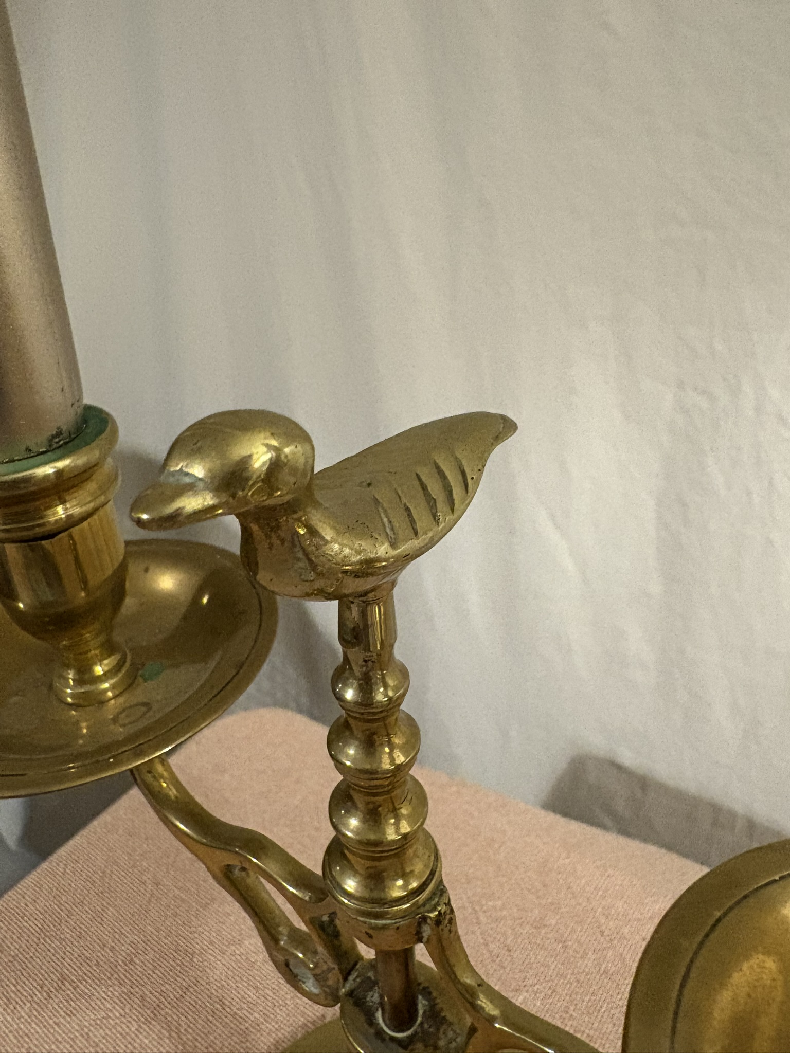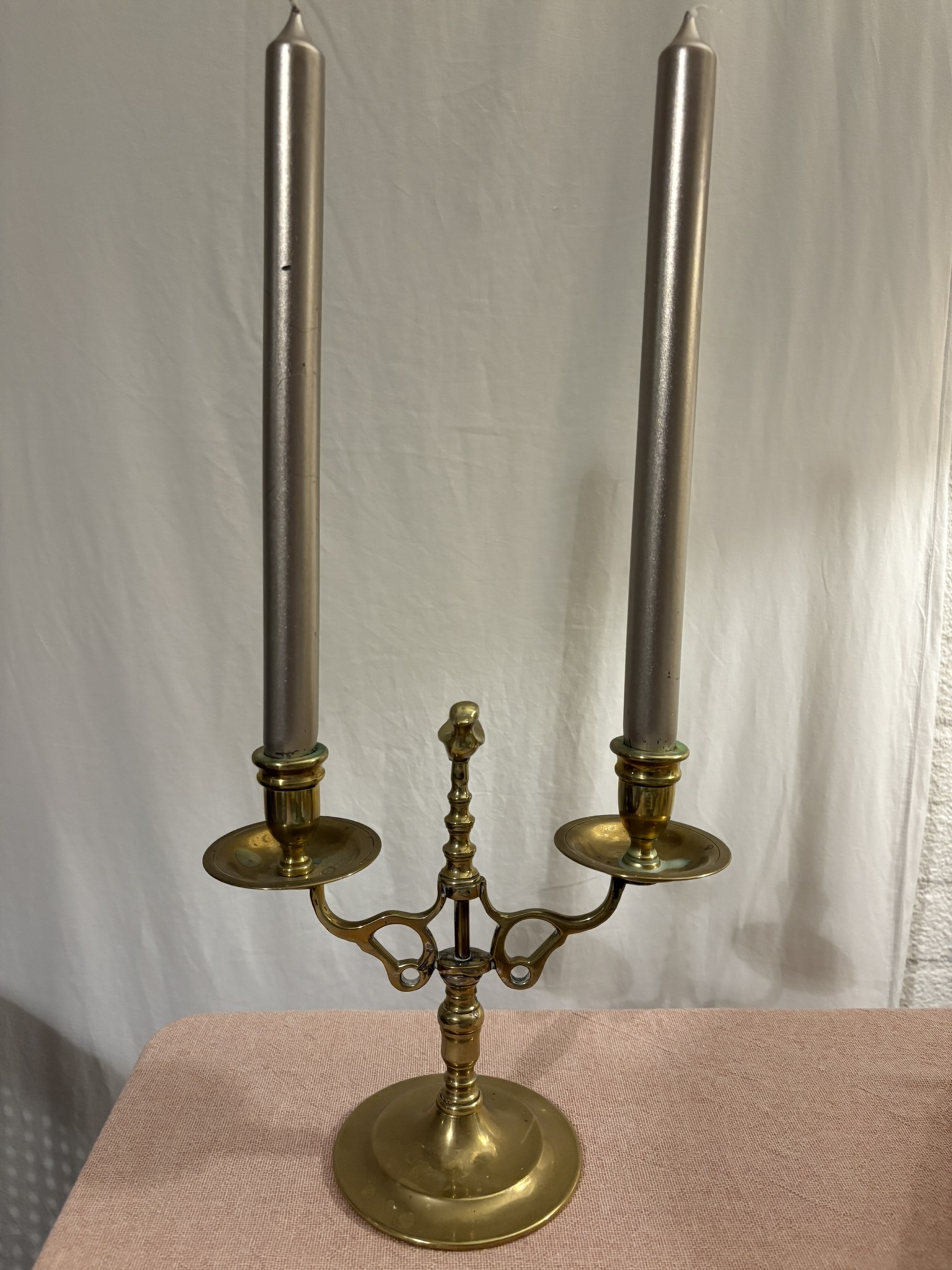 twee-armige kandelaar met vogeltje