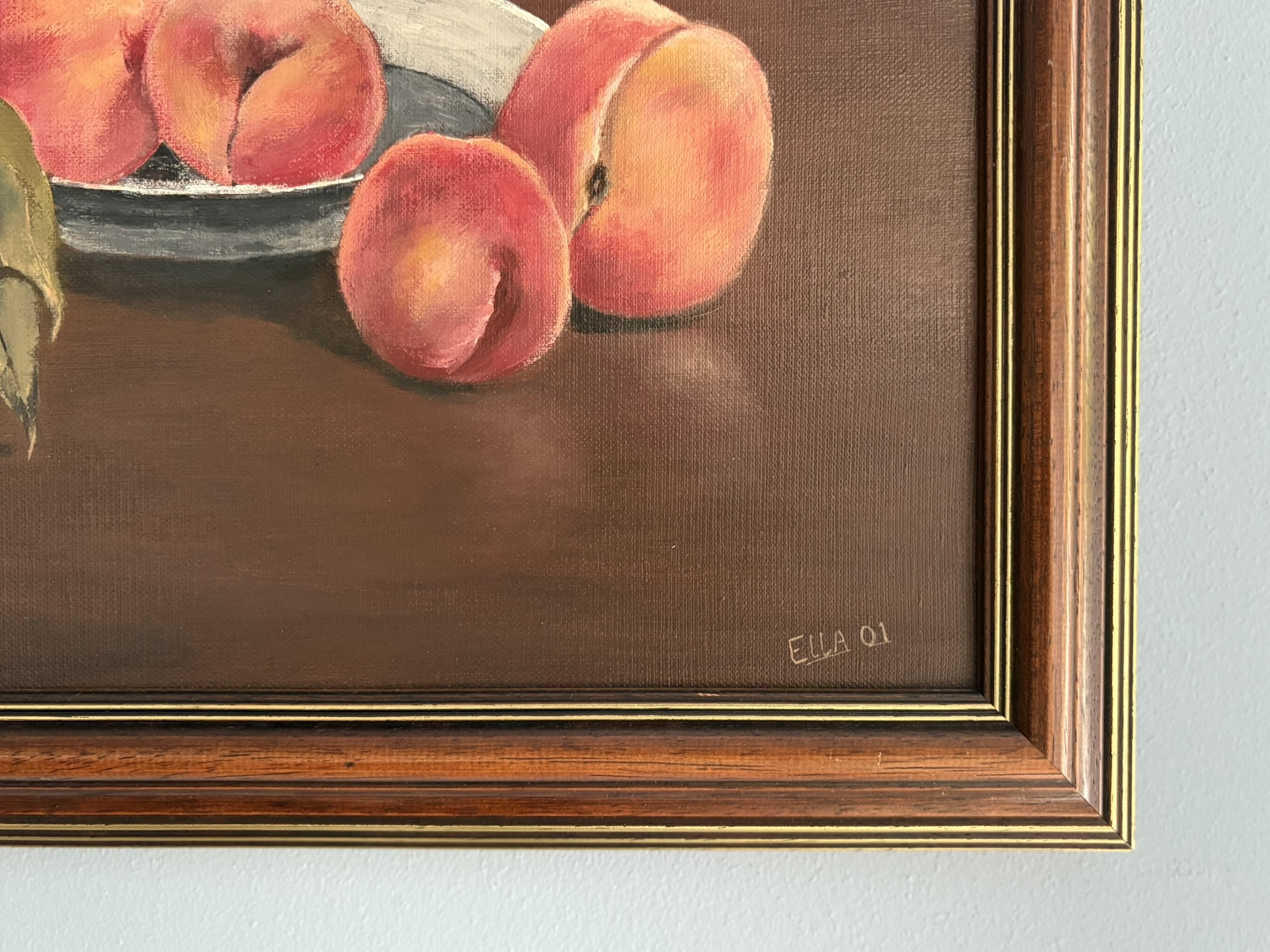Perziken op doek in houten lijst